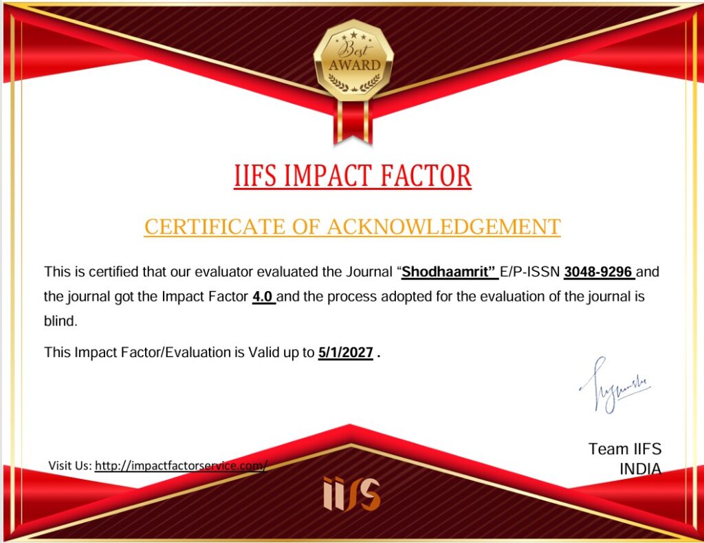 Shodhaamrit IIFS Impact Factor CERTIFICATE